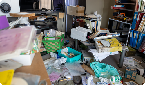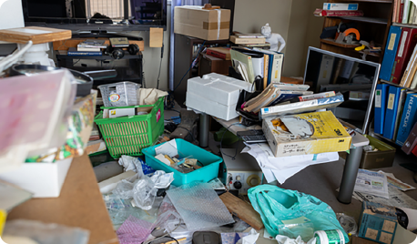 ご自宅にお伺いすると、玄関からリビング、縁側まで足の踏み場もないほどの大量のごみ、不用品等が置かれておりました。